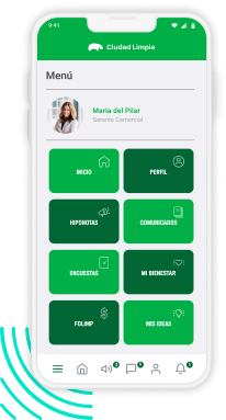 En este módulo encontrarás las últimas publicaciones del app relacionadas con Noticias, Eventos, Bienestar, Galería y Clasificados, adicionalmente contamos con las interacciones generadas por todos los usuarios y están relacionadas con me gusta, comentarios, compartir y/o guardar contenidos.